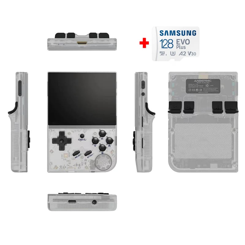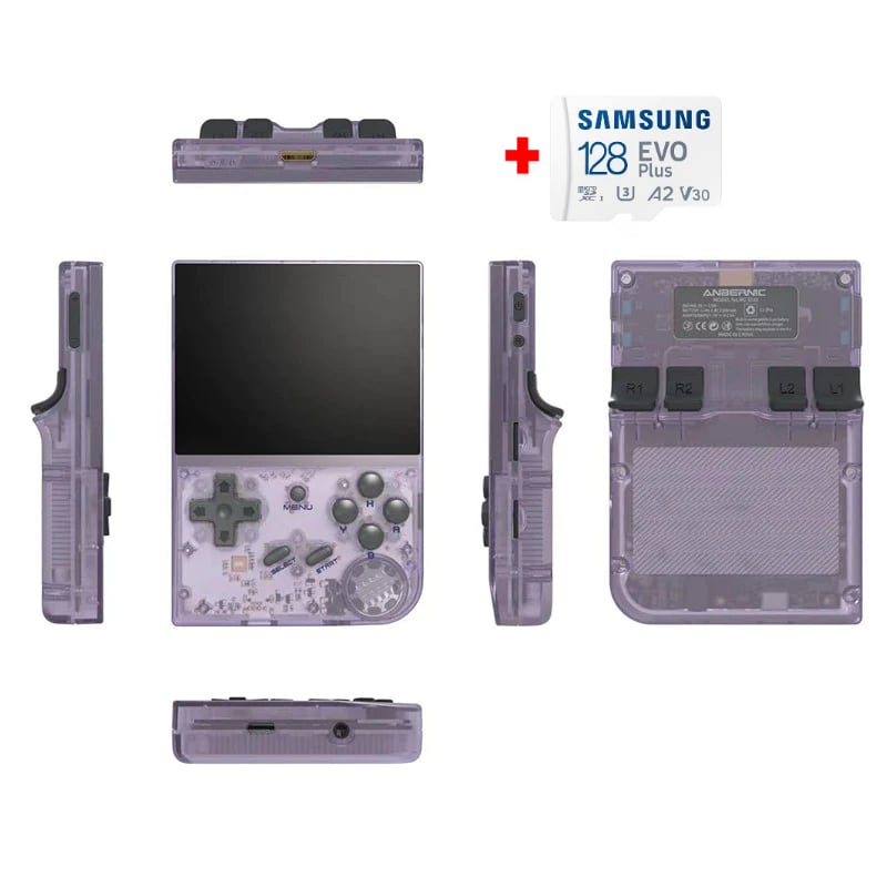 This is the latest new RG35XX handheld DMG style vertical console with a custom Samsung 128 GB micro SD card pre-configured so that you get the best out of the device. Ready to pick up and play with all the console, handheld and arcade classics up to the late 90's.